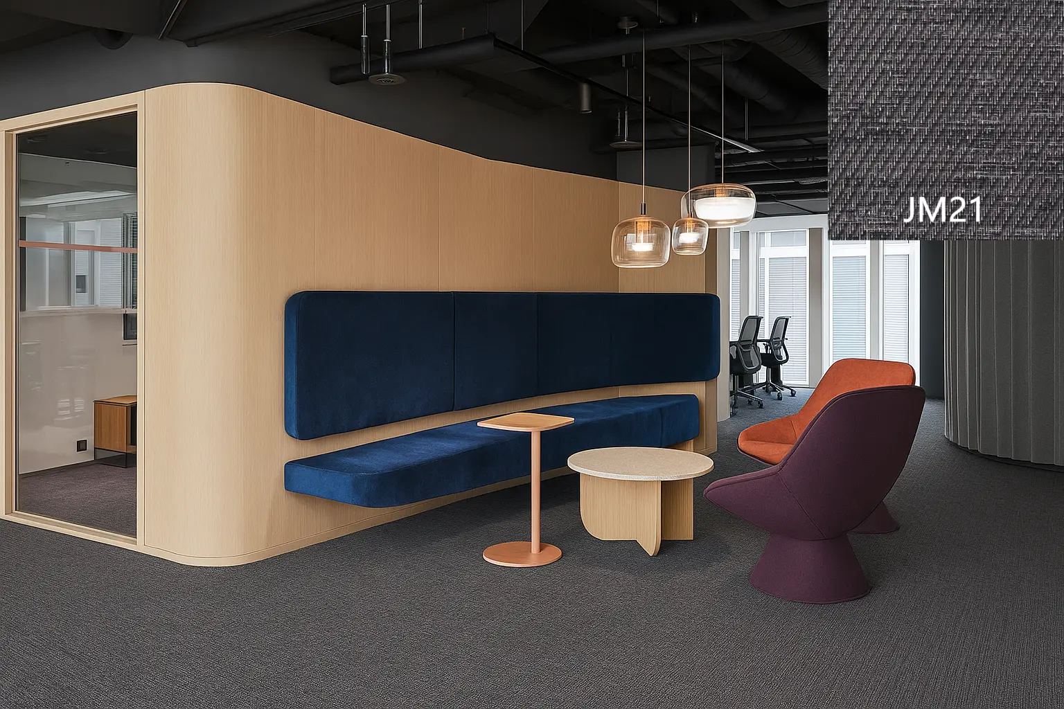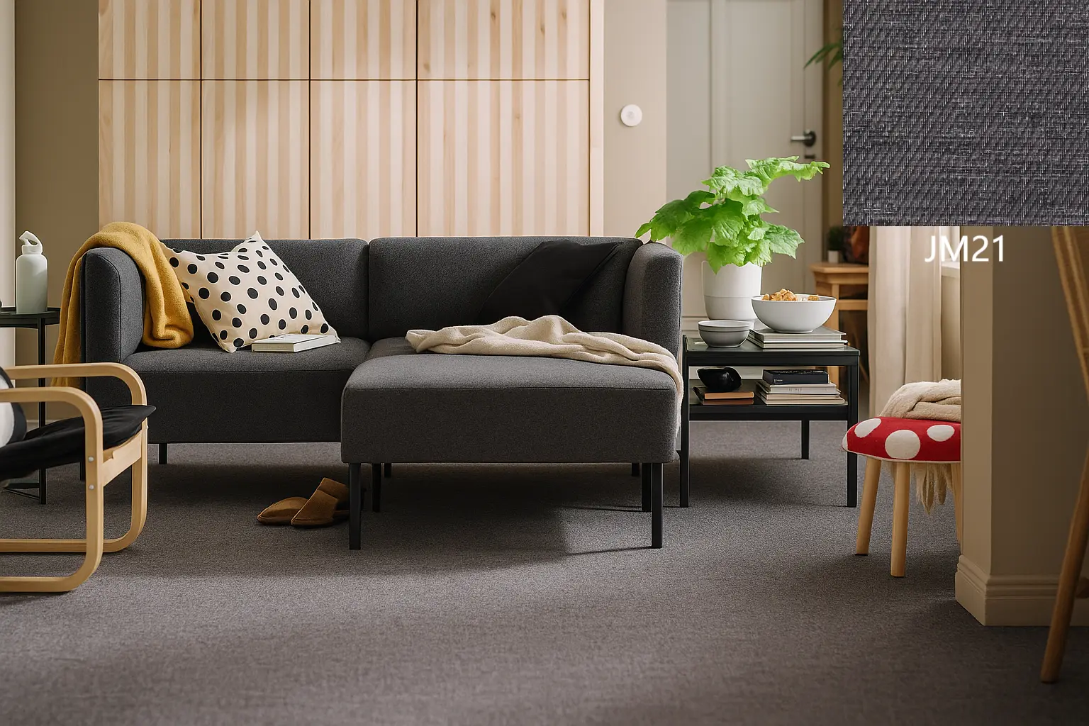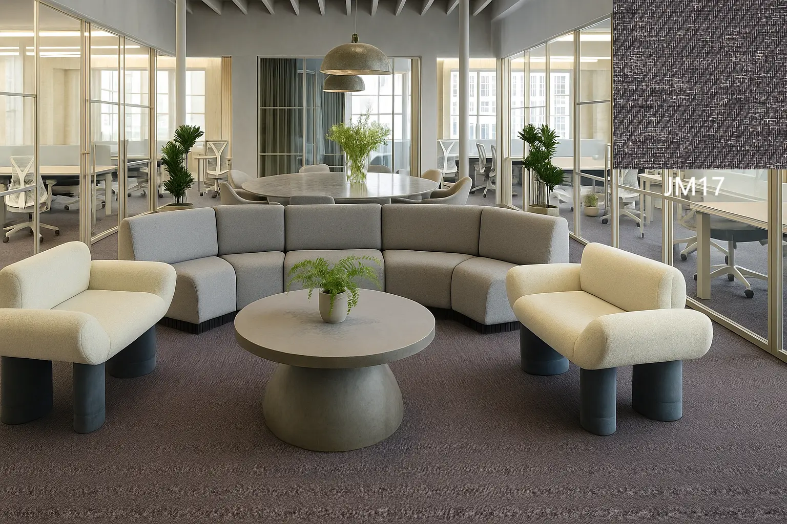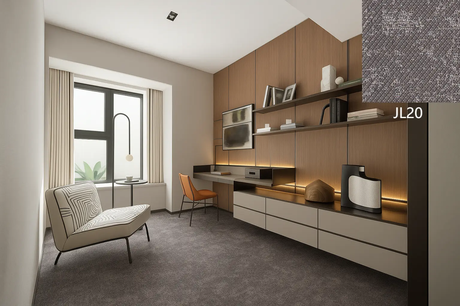 O tecido da série Imagine apresenta uma estrutura de sarja jacquard de duas cores que transmite estabilidade e resistência. Sua textura distinta de duas cores cria um padrão simples, mas envolvente. Combinando calor com sutileza, inspira criatividade infinita na expressão do charme introvertido.