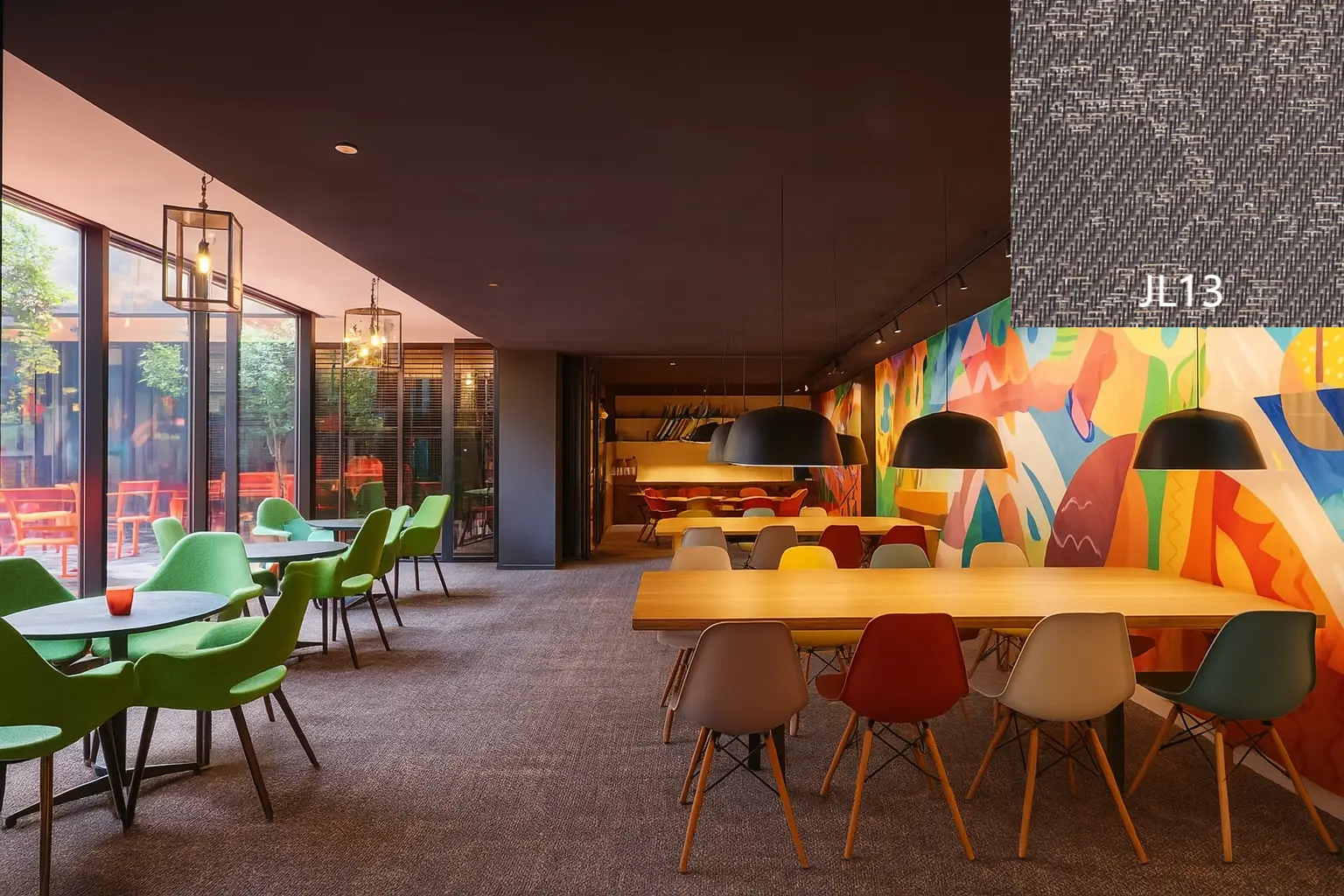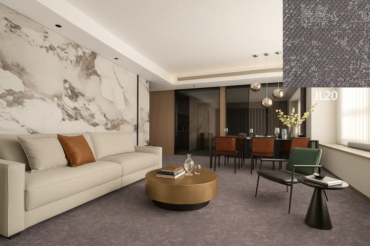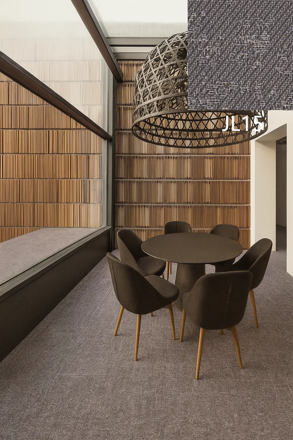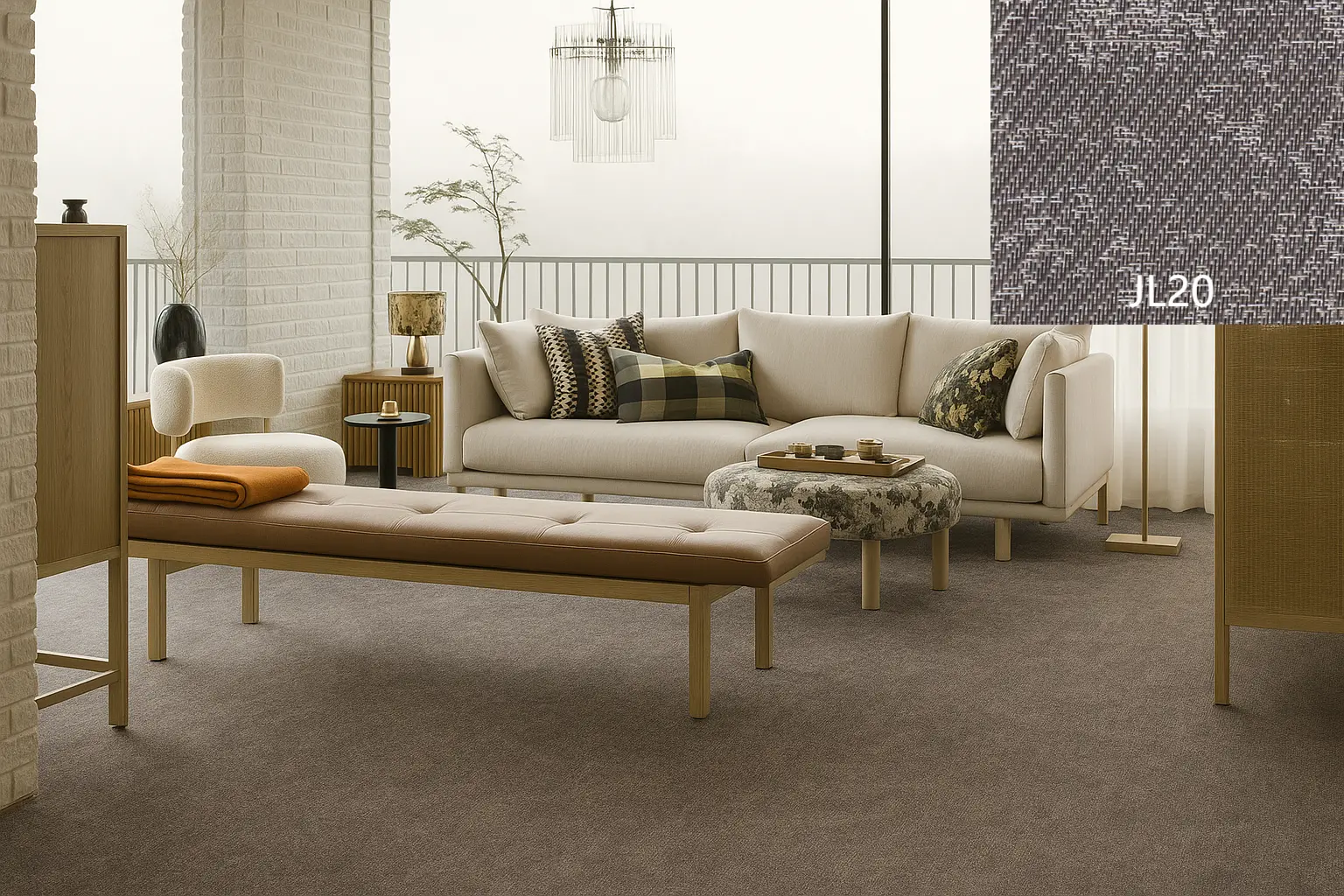 O tecido da série Imagine apresenta uma estrutura de sarja jacquard de duas cores que transmite estabilidade e resistência. Sua textura distinta de duas cores cria um padrão simples, mas envolvente. Combinando calor com sutileza, inspira criatividade infinita na expressão do charme introvertido.